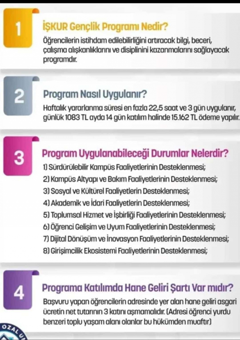 FIRAT ÜNİVERSİTESİ REKTÖRLÜĞÜ BÜNYESİNDE 7,5 AY SÜRE İLE 2709 ÖĞRENCİYE İŞKUR GENÇLİK PROGRAMI DÜZENLENECEKTİR.