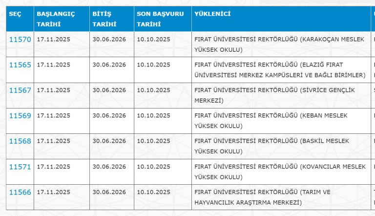 BAŞVURU TARİHLERİ: 06.10.2025-10.10.2025