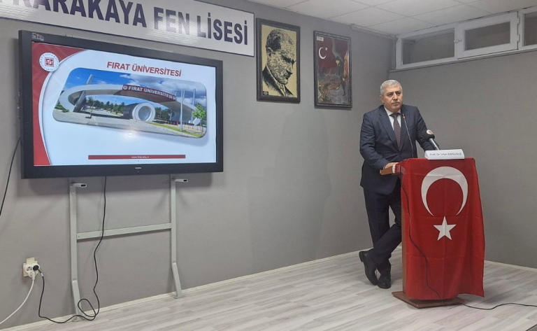 Üniversitemiz Rektör Yardımcısı Prof. Dr. İrfan Kaygusuz, Kaya Karakaya Fen Lisesinde öğrencilerle bir araya gelerek üniversitenin bilimsel faaliyetleri ve hedefleri hakkında kapsamlı bilgiler verdi. Prof. Dr. Kaygusuz, Fırat Üniversitesinin YÖK tarafından “Araştırma Üniversitesi” olarak seçilen üniversiteler arasında yer aldığını hatırlatarak, bu statünün ciddi bir akademik altyapı, güçlü araştırma ekosistemi ve yüksek nitelikli bilimsel üretim gerektirdiğini vurguladı.