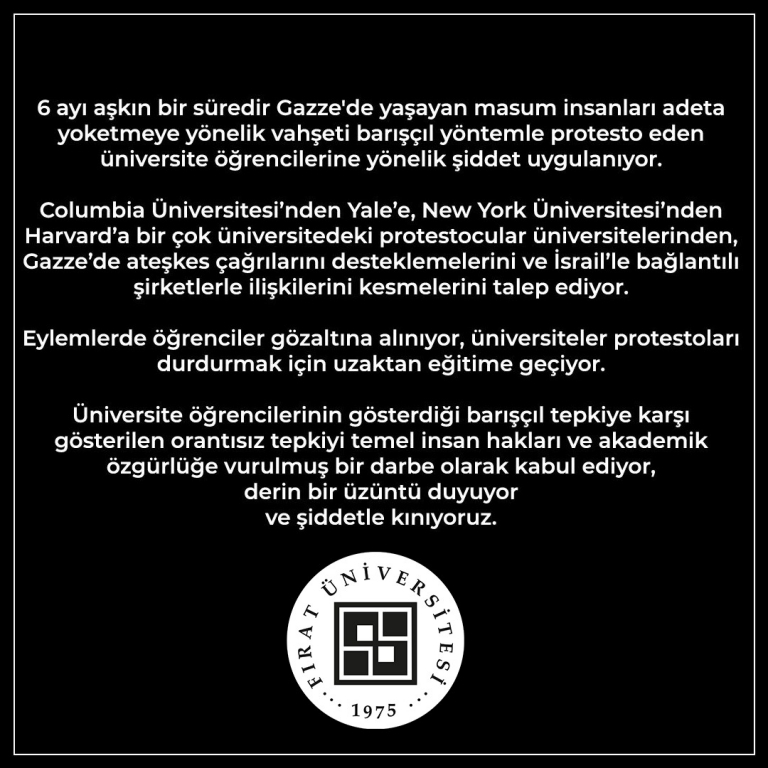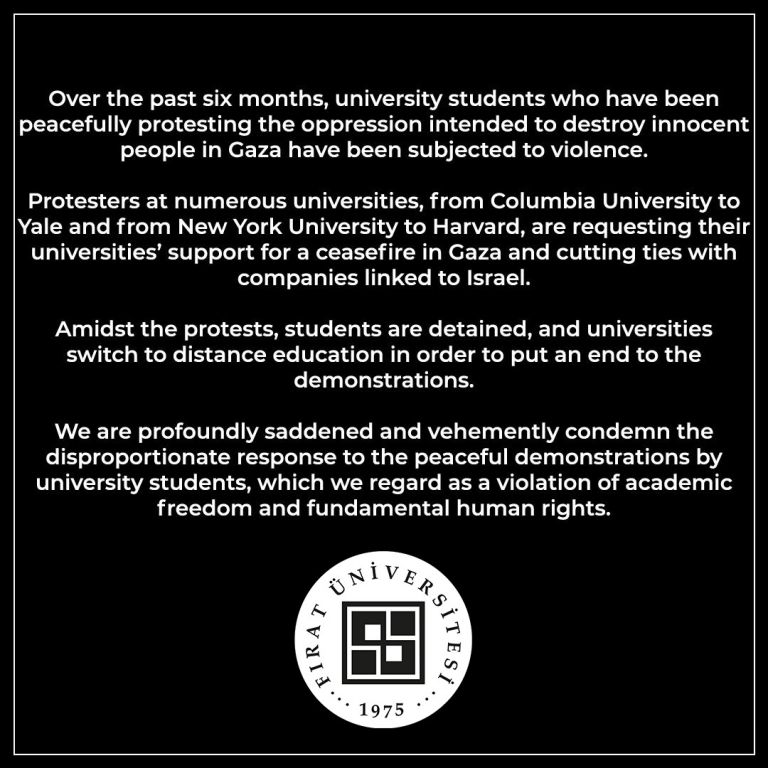 Üniversite öğrencilerinin gösterdiği barışçıl tepkiye karşı gösterilen orantısız tepkiyi temel insan hakları ve akademik özgürlüğe vurulmuş bir darbe olarak kabul ediyor, derin bir üzüntü duyuyor ve şiddetle kınıyoruz.