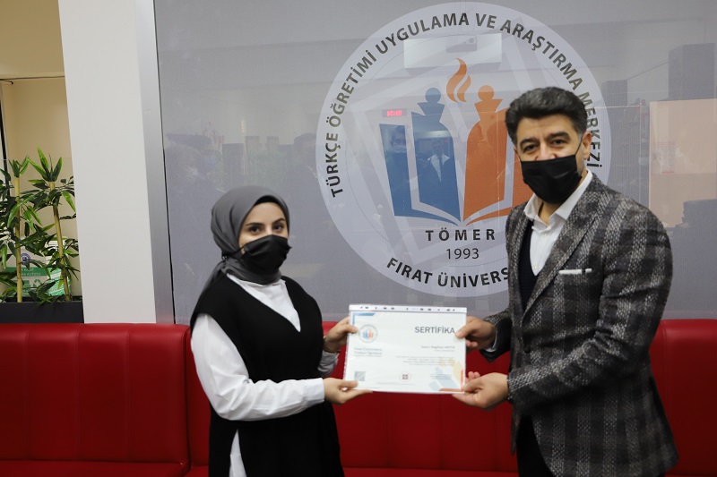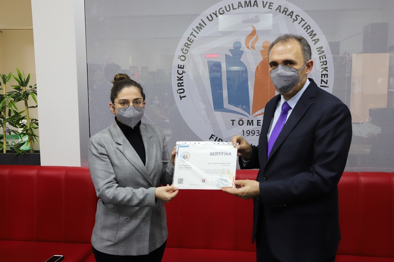 TÖMER’de Yabancılara Türkçe Öğretimi Sertifika Programı kapsamında 60 saat teorik, 20 saat uygulamalı eğitim alan ve kursları başarıyla tamamlayan 32 kursiyere sertifikaları düzenlenen törenle takdim edildi.