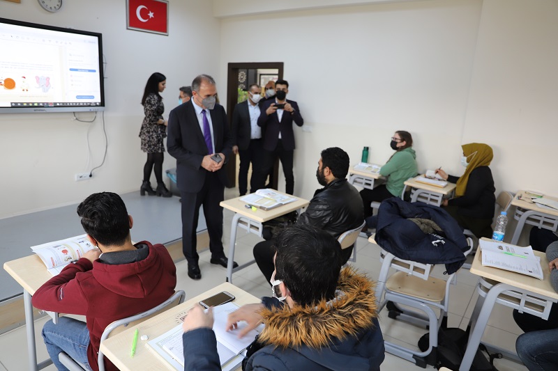 Öte yandan Rektör Prof. Dr. GÖKTAŞ, TÖMER’de eğitim gören yabancı uyruklu öğrencileri de sınıf ortamında ziyaret etti.