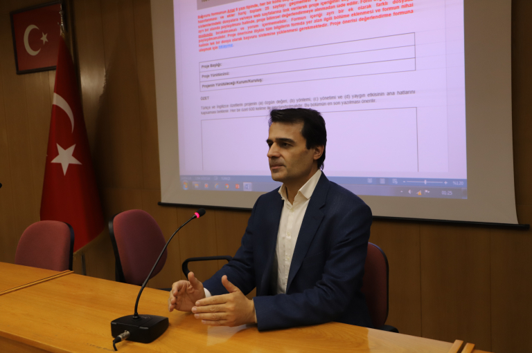 Programda ayrıca Mühendislik Fakültesi Dekan Yardımcısı Prof. Dr. Mehmet KARAKÖSE, proje hazırlama sürecinde dikkat edilmesi gereken hususlar hakkında akademisyenlere bilgi verdi.