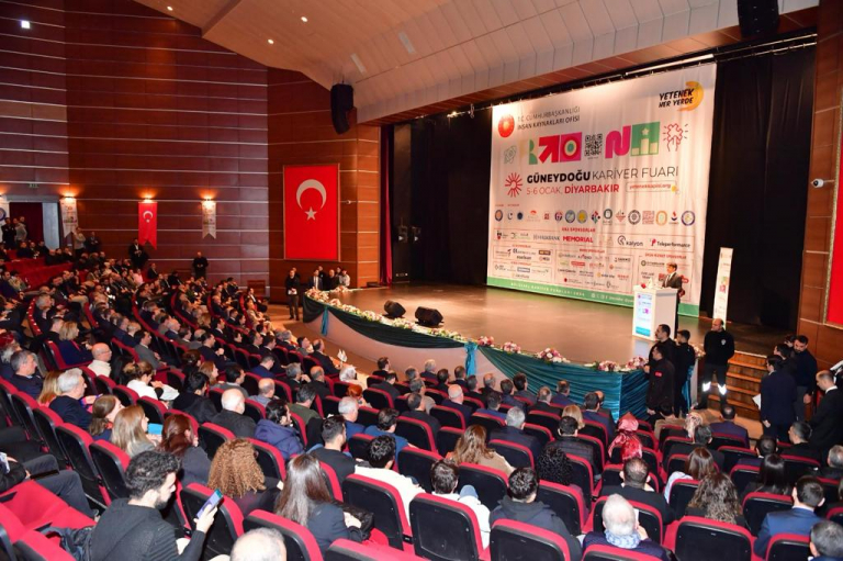 Diyarbakır 15 Temmuz Kültür ve Kongre Merkezinde Dicle Üniversitesi’nin ev sahipliğinde düzenlenen ve Üniversitemiz paydaşlığında gerçekleştirilen fuarın açılış programına; Cumhurbaşkanlığı İnsan Kaynakları Ofisi temsilcileri, Diyarbakır Valisi ve Belediye Başkan Vekili Ali İhsan SU, il protokolü, Üniversitemiz Rektör Yardımcısı Prof. Dr. Mehmet YILMAZ, Genel Sekreter Prof. Dr. Sinan AKPINAR diğer paydaş üniversite rektörleri, vali yardımcıları, kaymakamlar, kurum amirleri, dekanlar, STK temsilcileri, iş insanları ve öğrenciler katıldı.