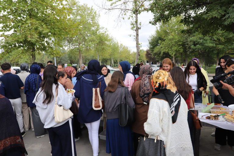 Düzenlenen etkinlikte öğrenciler tarafından hazırlanan çeşitli yiyecek ve içecekler satışa sunuldu. Kermesle ilgili bilgiler veren Üniversitemiz Sosyal Bilimler Meslek Yüksekokulu Dr. Öğr. Üyesi Ayşe Özpolat, “Düzenlediğimiz bu etkinliği sadece bir yardım etkinliği olarak değil insanlık onurunun ayaklar altına alındığı bir çağda sesimizi yükseltmek çabasıdır. Çünkü savaşın dışında kalmak mümkün değildir. Savaş sadece silah taşıyanları değil sessiz kalanları da içine alır. Tarafsızlık çoğu zaman zulme ortaklıktır. Gazze’de yaşananlar sadece bir bölgenin değil tüm insanlığın sınavıdır. Bu sınavda vicdanı olan herkesin bir cevabı olmalıdır. Bizim cevabımızda bu kermesledir” dedi.