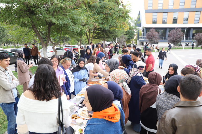 “Gazze Açken Ben Tok Olamam, Çünkü Ben İnsanım Çünkü Benim Yurdum Fırat Nehri’nin Kenarı sloganı” ile Üniversitemiz kütüphane binası önünden açılan kermese akademisyenler ve öğrenciler yoğun bir katılım gösterdi.