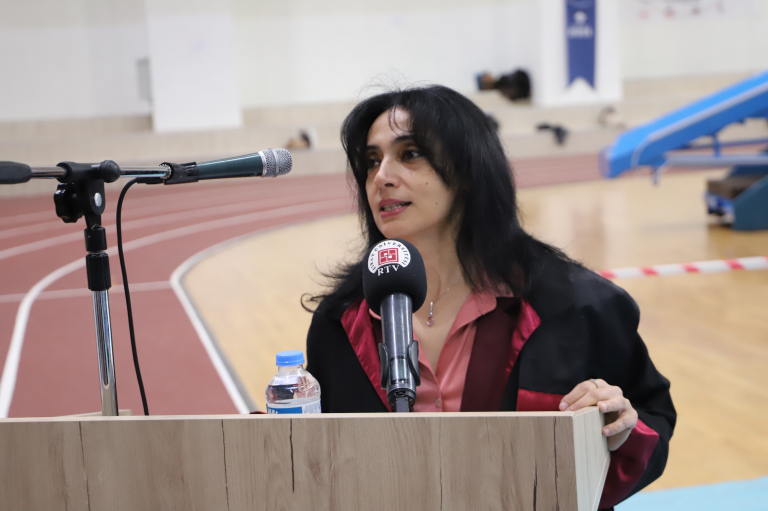 Sağlık Bilimleri Fakültesi Dekanı Prof. Dr. Gamze Kırkıl, günün anlam ve önemine ilişkin bir konuşma yaptı. Konuşmasında sağlık mesleklerinin yalnızca bilgi değil; aynı zamanda sorumluluk, etik değerler ve insan hayatına dokunma bilinci gerektirdiğini vurgulayan Prof. Dr. Kırkıl, öğrencilerin meslek hayatları boyunca bilimsel doğruluktan ve insani değerlerden ayrılmamaları gerektiğini ifade etti.