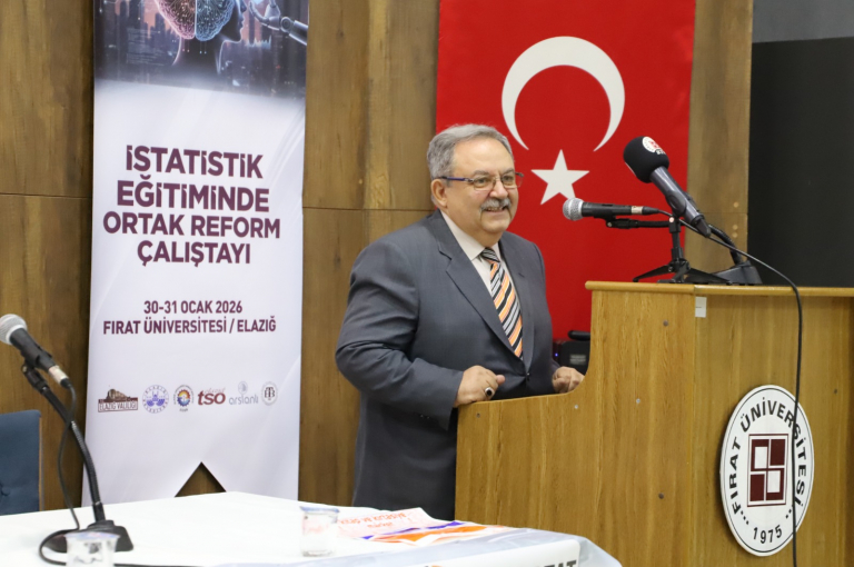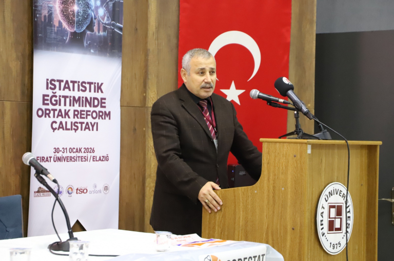 Türkiye’nin güzide üniversitelerinden birbirinden değerli onlarca bilim insanını ağırlamaktan duyduğu memnuniyeti dile getiren Fırat Üniversitesi Rektör Yardımcısı Prof. Dr. Mahmut Doğru, “İstatistik bilimi olmadan hiçbir bilim dalı düzgün işleyemez.” diyerek çalıştaya katkı sunan tüm paydaşlara teşekkürlerini iletti.