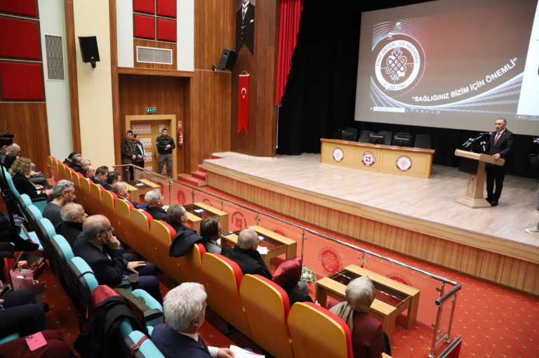 Elazığ, Bingöl ve Tunceli Tabipler Odası Başkanı Prof. Dr. Hacı Bayram Tosun yaptığı konuşmada sağlık çalışanlarının önemine değindi.